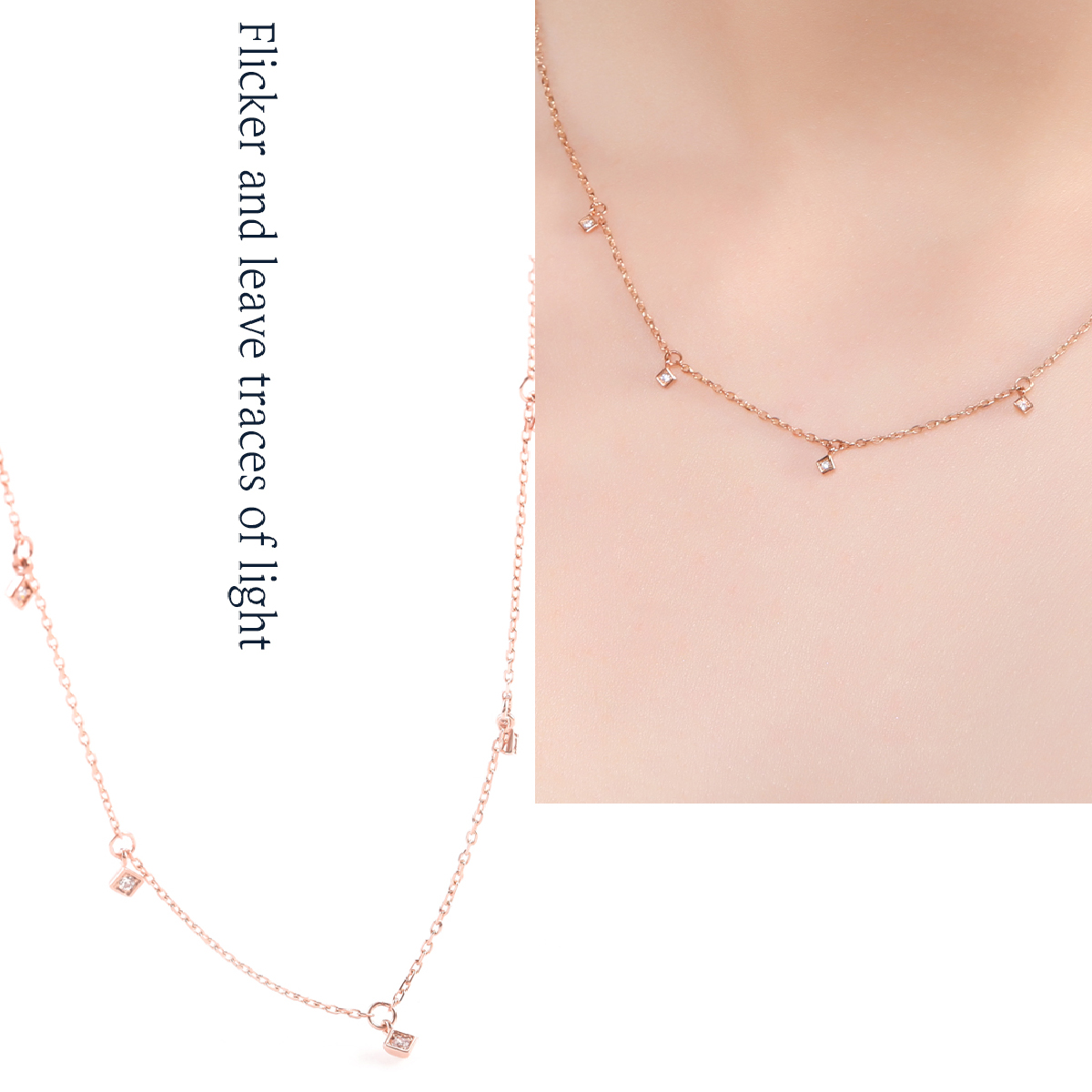 14K 다즐링 사각 큐빅 참 목걸이