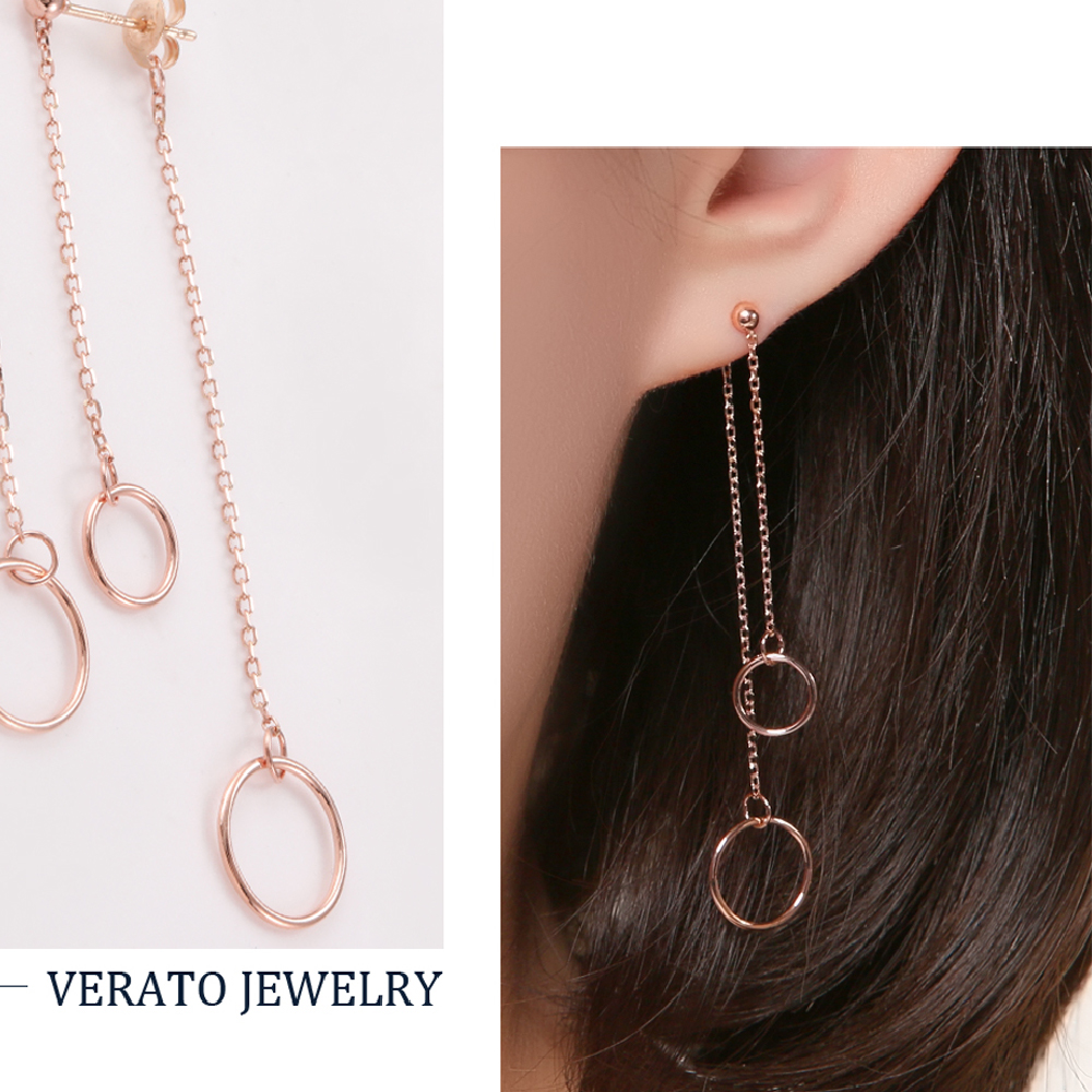 14K 트윈 드롭 링 귀걸이