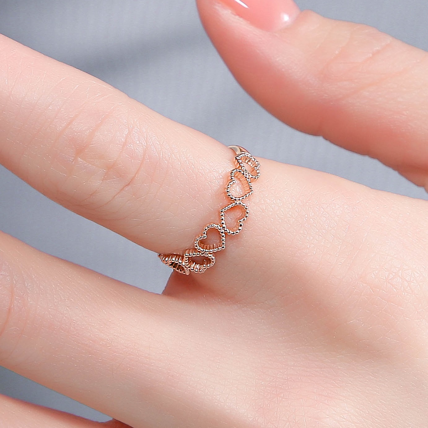 14K 커넥티드 러브볼 하트 웨이브 반지