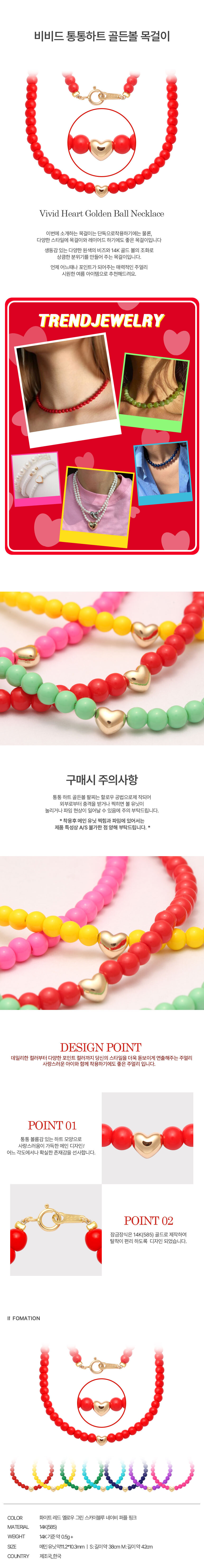 14K 비비드 통통하트 골든볼 목걸이